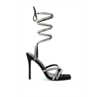 AZALEA WANG womens lunarlight lace up calf high bling sandal in bl...