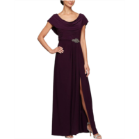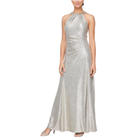 Alex Evenings Cold Shoulder Draped Metallic Gown 4P 24W