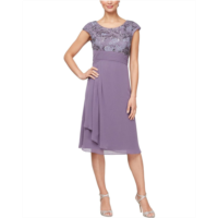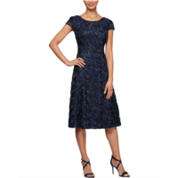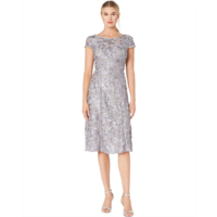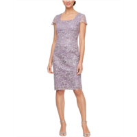 Alex Evenings Embroidered Sheath Dress with Cap Sleeves and Square...