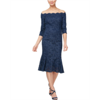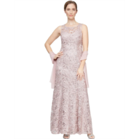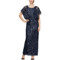 Womens Alex Evenings Long Glitter Mesh Cold Shoulder Dress