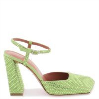 Amina Muaddi satin lime charlotte pumps with crystals