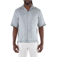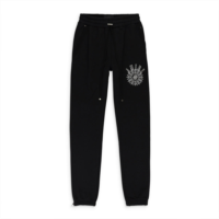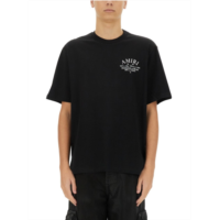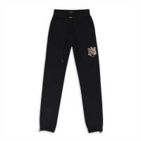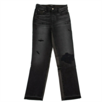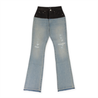 Amiri sky indigo/black hybrid bootleg w/ leather jeans