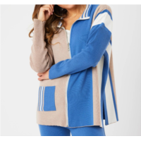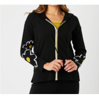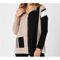 Angel Apparel zip hoodie ribbed cardigan in black/sand