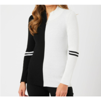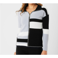 Angel Apparel two tone ribbed zip up cardigan in black/ivory