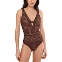 Womens BECCA Castaway Textured Plunge One-Piece