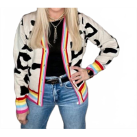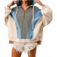 BiBi soft sherpa out stitching front zip up sweater in beige