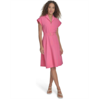 Womens Calvin Klein Sleeveless Belted Founce Skirt Dress