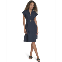 Womens Calvin Klein Short Sleeve Scuba Crepe Belted Peplum Aline
