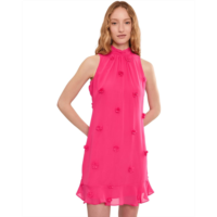 Womens CeCe 3D Floral Applique Tie Neck Mini Dress