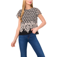 CeCe Short Flutter Sleeve Crew Neck Top