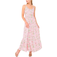 CeCe Floral Spaghetti Strap Tiered Midi Dress