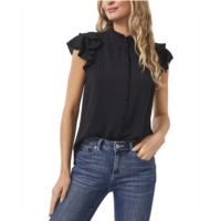 CeCe Short Sleeve Pin Tuck Ruffled Blouse