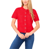 CeCe Short Sleeve Bow Button Cardigan