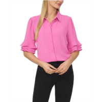 CeCe Womens Button Front Ruffled 3/4 Sleeve Blouse