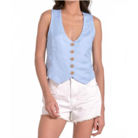 ELAN linen button down vest in light blue