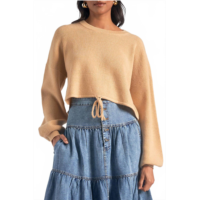 ELAN drawstring pullover sweater in dark beige