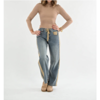 Ee:some mineral washed drawstring side stripe jeans in blue