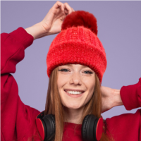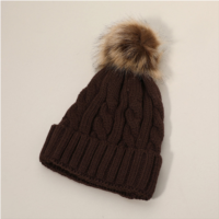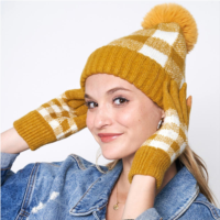 FASHNZFAB buffalo check patterned faux fur pom pom beanie hat