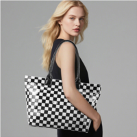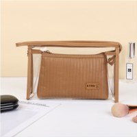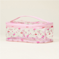 FASHNZFAB top handle lemon pattern transparent cosmetic pouch bag