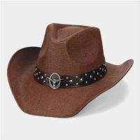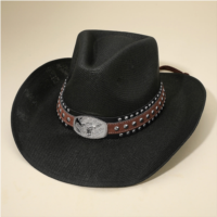 FASHNZFAB western oval steer head buckle studded band cowboy fedor...