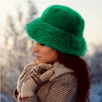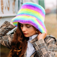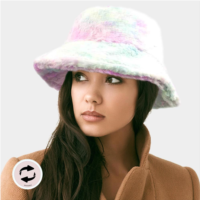 FASHNZFAB reversible colorful soft faux fur bucket hat