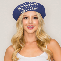 FASHNZFAB pearl stone cluster embellished wool beret hat
