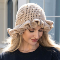 FASHNZFAB pearl embellished chunky crochet bucket hat
