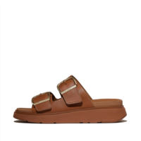 Fitflop Buckle Two-Bar Leather Slides