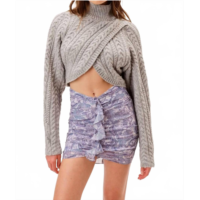For Love & Lemons cable knit zip up crop jacket lace pockets in rose