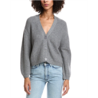 Forte Cashmere wool & cashmere-blend short rib v-neck button cardigan...