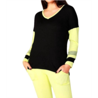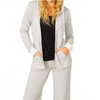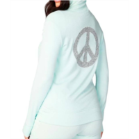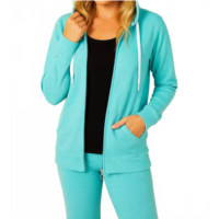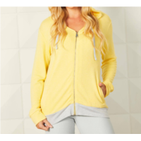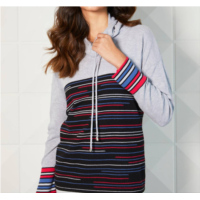 French kyss womens stripe sleeve zip up hoodie in black denim
