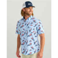Huk Mens Tide Point Printed Short Sleeve Shirt Medium Blue