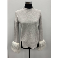 InCashmere cashmere sweater with mongolian lamb cuffs in light grey