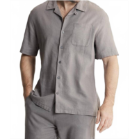 JACHS NEW YORK linen suffolk short sleeve camp shirt in dark grey...