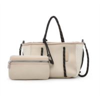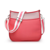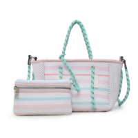 Jen & Co. coralia mini neoprene bag in multi stripe