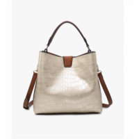 Jen & Co. womens tati satchel bag in croc champagne