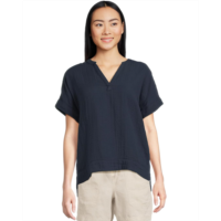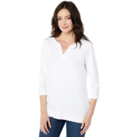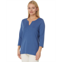 L.L.Bean Womens LLBean Pima Tops Split-Neck Tunic 3/4 Sleeve