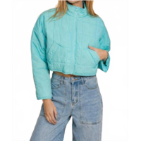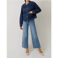 LE LIS mckenna floral peter pan collar jacket in medium blue denim