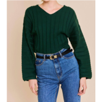 LE LIS pamela- long sleeve v-neck sweater in hunter green