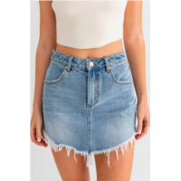 LE LIS marin fray denim skirt in light denim