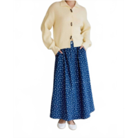 LE LIS samantha floral pleated circle skirt in medium blue denim