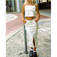 LE LIS sadler utility cargo midi skirt in cream