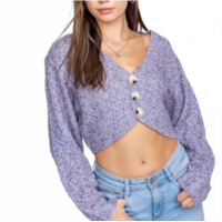 LE LIS cotton dusk cropped cardigan in purple