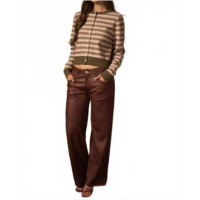 LE LIS low waist crinkle detail faux leather pants in brown