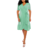 LONDON TIMES short sleeve faux wrap midi dress in absinthe green