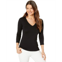 Womens Lilla P 1x1 Rib 3/4 Sleeve V-Neck Top