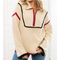 Lula the Label quarterback keeper contrast quarter zip sweater in ga...