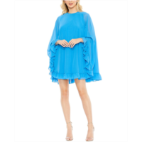 Mac Duggal high neck ruffle hem cape mini dress
