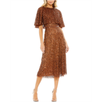 Mac Duggal Womens Embellished Cape High Neck Midi Dress