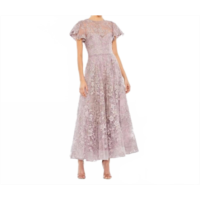 Mac Duggal Womens Flutter Sleeve Floral Embroidered Net Gown